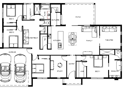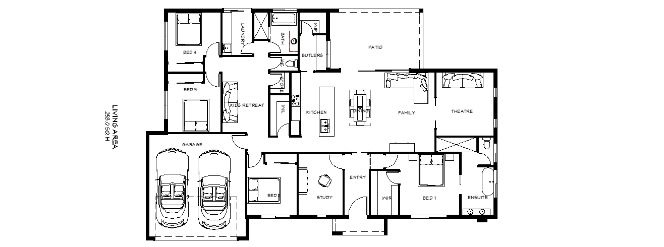 There is no sacrifice of space in the Jardine, with clearly defined zones creating generous family areas. Designed to take advantage of your surroundings, the living area is free flowing, escaping to the outdoor living, creating an ideal space for family and guest entertaining.